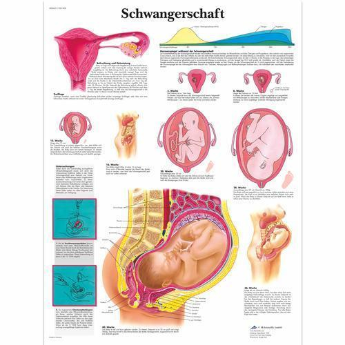 This colorful anatomical chart displays human pregnancy. The anatomy of pregnancy is illustrated along with useful information. The anatomy poster presents different types of information about pregnancy from fetal development to pregnancy hormones. Printed on premium glossy (200g) paper. Convenient Poster size 50 x 67 cm (20 x 26").