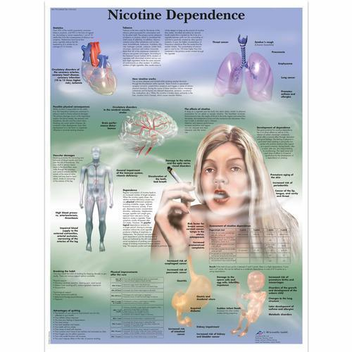 Over 30% of the world's population uses tobacco products, and 90% of that is from cigarettes. The anatomy of nicotine affects the diseases it can cause, including cancer, are detailed on this anatomical poster. For such a widespread practice education is important and this anatomy poster can help do that. Printed on premium glossy (200g) paper. Convenient Poster size 50 x 67 cm (20 x 26").
