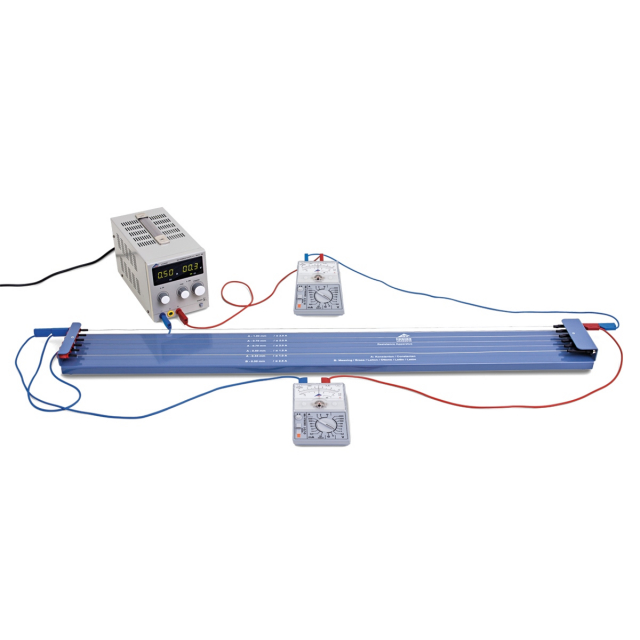 In simple electrical conductors, the current I which passes through the conductor is proportional to the applied voltage U. The constant of proportionality, the ohmic resistance R, is dependent on the length x of the conductor, its cross-sectional area A and the nature of the material. This relationship is to be investigated using constantan and brass wires.