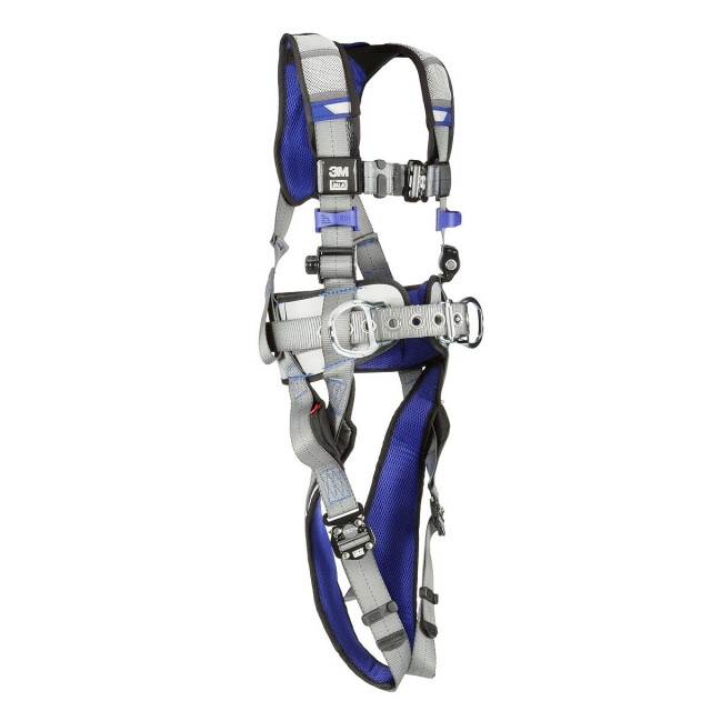 The 3M™ DBI-SALA® ExoFit™ X200 is designed with high-quality components that have been developed to enhance the harnesses safety, fit, and functionality while working at height on your job site. The X200 comfort harness is built with 6,000lb polyester webbing, nylon/polyester hybrid comfort padding and robust alloy steel hardware. Dorsal D-ring connections are faster and easier with the stand-up back D-ring. The anti-slide back D-ring plate design helps reduce dorsal D-ring slide and enables a convenient adapter location for connecting personal SRLs. There are also locking torso-adjustment and quick-connect buckle options available to help your team maintain a safe and comfortable harness fit.