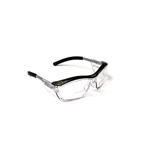 3M™ Nuvo™ Reader Protective Eyewear features built-in magnifying diopters on the lower lenses to provides eye safety to workers who have difficulty reading small print or seeing small detail work. Characteristic of the Nuvo™ line, these glasses feature a distinct, nostalgic look with reliable eye protection that includes an integral brow bar and side shields for added coverage. The glasses appear to have a dual lens to make them look like standard glasses, but the lens is really a one-piece design for extra durability. The impact-resistant polycarbonate lens absorbs 99.9% UV rays. To enhance comfort, these safety glasses come with a soft nose bridge to cushion a high contact point. These safety glasses are recommended for the following tasks: chipping, chiseling, drilling, grinding, machining, masonry, pouring/casting, power fastening, riveting, sanding and sawing. Industries in which these safety glasses are commonly used include aviation, construction, food and beverage, general manufacturing, mining, oil and gas, primary metals and transportation.
