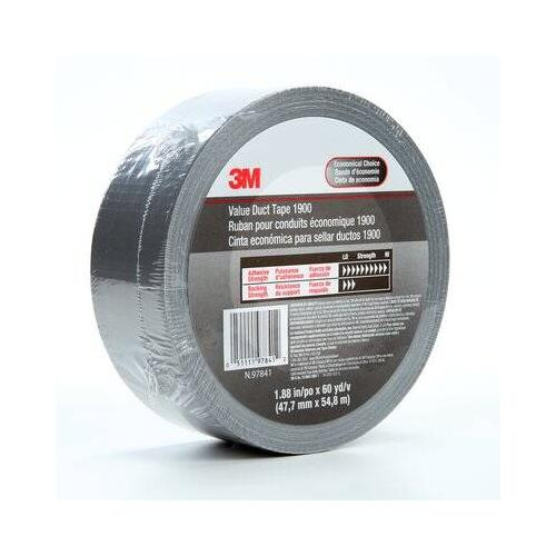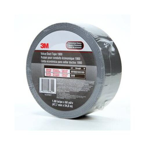 Originally developed for heating, ventilating and air conditioning (HVAC) applications, duct tape is used today in a variety of maintenance, repair and construction settings. Due to its unique design and low price, 3M™ Value Duct Tape 1900 is a good choice for light indoor duties where overall strength and durability are not crucial. 3M™ Value Duct Tape 1900 comes with a classic, silver-colored backing. It is easy to tear from the roll and sticks instantly, providing a wide range of convenient solutions.