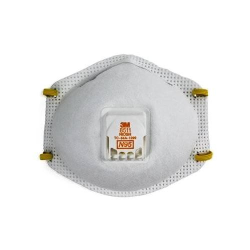 3M Particulate Respirator 8511, N95 is a disposable particulate respirator that is designed to help provide reliable respiratory protection of at least 95 percent filtration efficiency against certain non-oil based particles. The respirator is designed for use for particles such as those from grinding, sanding, sweeping, sawing, bagging, or other dusty operations. This respirator can also help reduce inhalation exposures to certain airborne biological particles (examples: mold, Bacillus anthracis, Mycobacterium tuberculosis), but cannot eliminate the risk of contracting infection, illness, or disease. Soft inner material provides added comfort while the cup shape design makes the respirator spacious and durable. Braided headbands and an adjustable M-noseclip helps provide a custom and secure seal. The respirator incorporates 3M’s proprietary technology with advanced electrostatically charged microfiber filter media designed for ease of breathing. This respirator is compatible with a variety of protective eyewear and hearing protection. Fitted with a 3M Cool Flow Exhalation Valve, this respirator is ideally suited for work situations involving heat, humidity, or long periods of wear. The proprietary 3M Cool Flow valve is designed to release hot, humid exhaled breath quickly, helping to prevent an unpleasant build up of heat inside the facepiece - a significant cause of discomfort to respirator wearers. The Cool Flow valve’s efficiency in keeping breathing cool and comfortable has been demonstrated through testing: the atmosphere inside a respirator with a Cool Flow valve is on average 7.5°F cooler than the similar product without the valve. This makes Cool Flow valve respirators ideal for long periods of wear, especially where conditions are hot, humid or physically demanding.