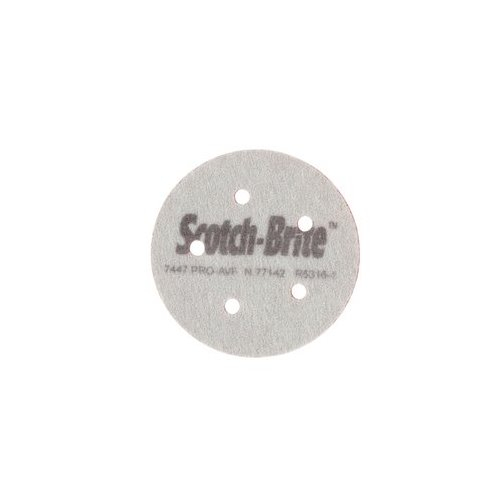 Suitable for use on a wide variety of materials such as wood, metal, plastics, ceramics, porcelain, glass, rubber, or composites, the performance of this pad is comparable to steel wool grade 1. However, unlike steel wool, the Scotch-Brite™ Hookit™ 7447 PRO Disc won"t rust after use or create fine metal splinters. Use it for cleaning, finishing, blending, and deburring, or for scuffing before applying paint and paint primers. It can even clean upholstery and chrome. This versatile product is effective in wet or dry environments and can be rinsed and used over and over again