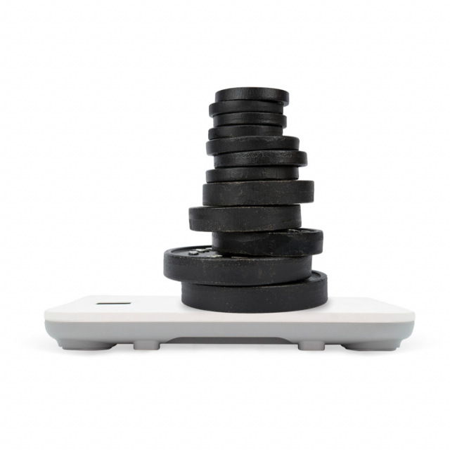 A wide base wireless weight scale with capacity up to 550 pounds - automatically records and tracks measurements via mobile app to enable trending and sharing.