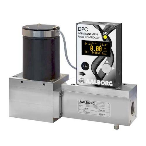 Aalborg Instruments DPC series precision digital mass flow controller provides accurate and stable control of mass flow rates, of process gases. With simultaneous displays of Mass Flow, Volumetric Flow, Pressure and Temperature parameters it can be used in a variety of industries: scientific and analytical applications, bioreactors and surface depositions, gas sampling, manufacturing and metrology activities. DPC flow controllers support various functions including: user selectable local, analog, digital or program set point control, two programmable flow totalizers, low, high or range flow, temperature and pressure alarms, automatic zero adjustment (activated via local or communication interface), programmable SSR relay, programmable 0-5 Vdc, 0-10 Vdc or 4-20 mA analog inputs and outputs, user-programmable pulse output (via SSR), and extensive self-diagnostics functionalities. DPC differential pressure mass flow controllers feature totalizers with batch processing mode (0.5% RD + 0.2%FS) standard accuracy, 200:1 turn-down ratio and less than 150 ms response time. Significant savings are apparent, comparing to the cost of a single DPC embodying these features, with that of acquiring and installing mulitple, appliation-specific devices.