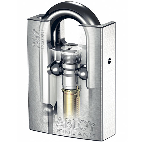 For applications where maximum security is required. Case-hardened steel body with raised shoulders and a toploaded cylinder provide the highest level of security and protection. Applications include containers, train wagons, trucks, lorries, heavy sliding doors, military applications etc. PL362 is equipped with a case hardened boron steel shackle, diameter 15 mm.
