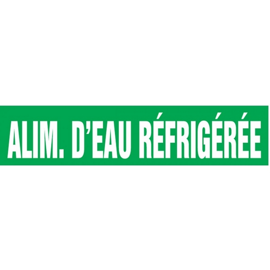Accuform, CRPK251STB, Snap Tite 1-1/2" to 2" O.D. Green French Pipe Marker: "Alim. D'Eau Refrigeree"
