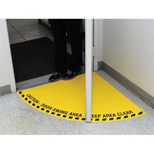 This floor Sign indicates that the door will swing open 90 degrees in designated area.