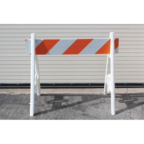 designed to meet MUTCD specifications, and are tested to (FHWA) NCHRP-350 crashworthy performance criteria. Lightweight, yet durable, the large white A-frame barricades get noticed with wide cross-beam Board. 8"h x 1-1/2" thick Board. Easy to set-up, take-down and stack for storage and transport.