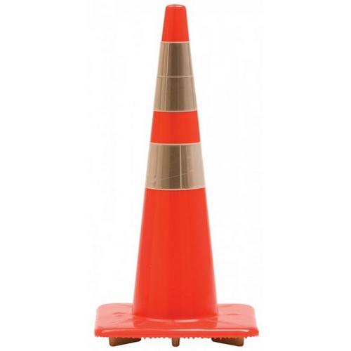 Bright traffic cones provide maximum visibility under all conditions - indoors and outdoors. Clearly outline hazardous areas to drivers and pedestrians. Place them in and around the plant and facility, as well as roadways. Conical design with square base makes them resistant to tipping. Durable, flexible, and resilient - springs back into shape after impact and being run over. Molded of PVC (Poly-Vinyl-Chloride)plastic with UV stabilizers for maximum resistance to fading. Cones are stackable for transport and storage. Where applicable, cones meet federal MUTCD and state standards.