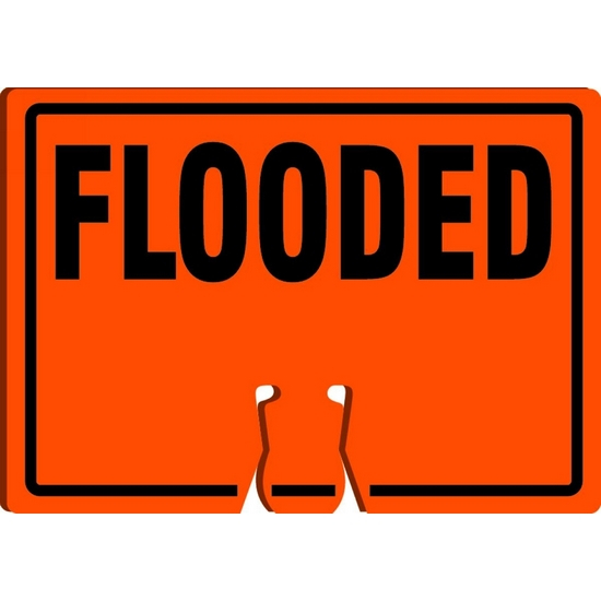10" x 14" Cone Top Warning Sign w/ Legend: "Flooded"