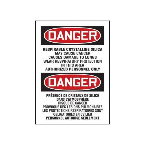 Accuform, FBLCAW121VSP, Bilingual Safety Label OSHA Danger "Respirable Crystalline Silica - May Cause Cancer...", 7" x 5"