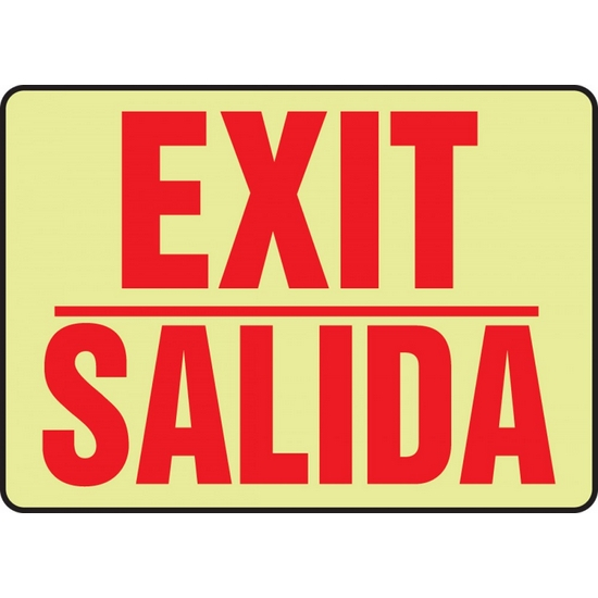 Accuform, FBMADC500MGP, 7" x 10" Lumi-Glow Plastic Bilingual Spanish Safety Sign w/ Legend: "Exit / Salida"