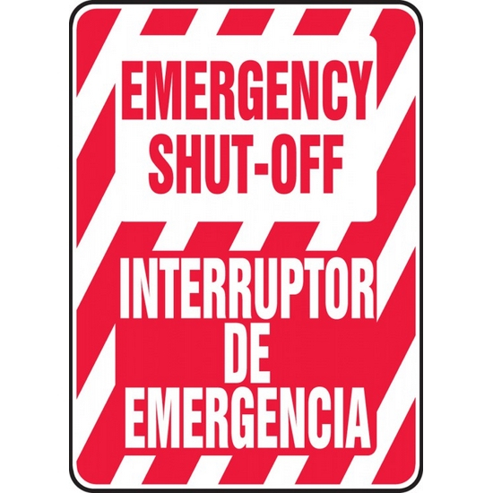 Accuform, FBMELC538XT, 20" x 14" Dura-Plastic Bilingual Safety Sign w/ Legend: "Emergency Shut Off"