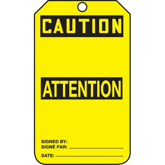 Accuform, FBMGT200PTM, 5-7/8" x 3-3/8" RP Plastic Bilingual Safety Tag with Legend: "Caution", Pack of 5 pcs