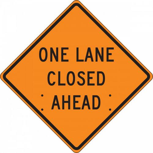 36" x 36" Fluorescent Vinyl Roll-Up Construction Sign with Legend: "One Lane Closed Ahead"