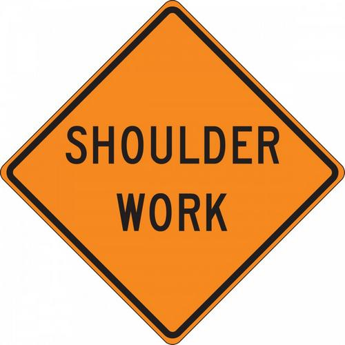 36" x 36" Fluorescent Vinyl Roll-Up Construction Sign with Legend: "Shoulder Work"