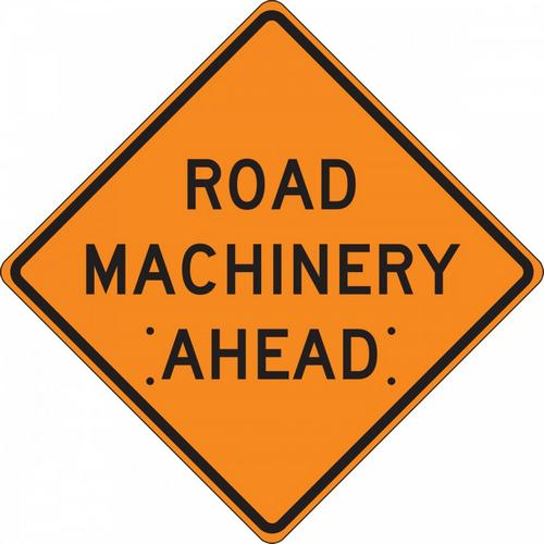 36" x 36" Mesh Vinyl Roll-Up Construction Sign with Legend: "Road Machinery Ahead"