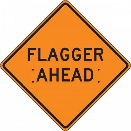 48" x 48" Reflective Vinyl Roll-Up Construction Sign with Legend: "Flagger Ahead"