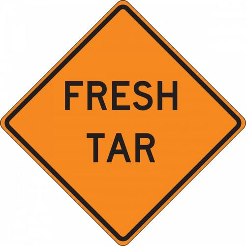 48" x 48" Reflective Vinyl Roll-Up Construction Sign with Legend: "Fresh Tar"
