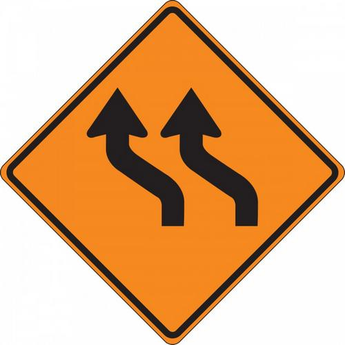 48" x 48" Diamond Grade Roll-Up Construction Sign with Symbol: "Two Left Lane Reverse Curve"