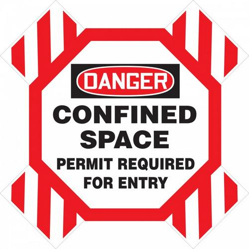 The crossbuck design fits onto the bolt pattern of a vertical confined space entrance. The attention-getting diagonal red-white stripes and center octagonal sign features the color, layout, and confined space warning message as specified by OSHA/ANSI. Adjustable crossbucks pivot flat for easy transport and storage. The 11 1/2" x 11 1/2" octagon sign is printed on .055" polyethylene plastic. Each arm of the printed crossbucks measure 6" x 42" with 1 1/2" x 9" slotted cutouts at the four ends to fit the bolt pattern across the entry-way - fits 22" to 38" outside bolt-to-bolt.