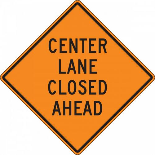 30" x 30" High Intensity Prismatic Rigid Construction Sign with Legend: "Center Lane Closed Ahead"