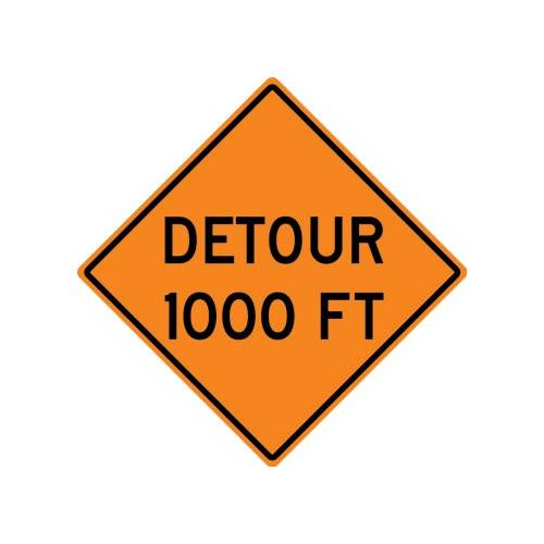 36" x 36" DG High Prism Rigid Construction Sign with Legend: "Detour 1000 Ft"