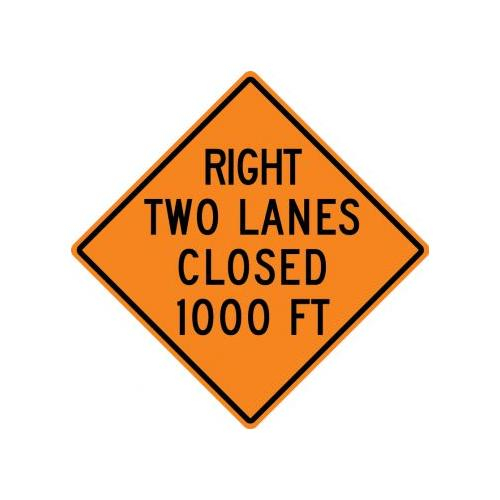 36" x 36" DG High Prism Rigid Construction Sign with Legend: "Right Two Lanes Closed 1000 Ft"