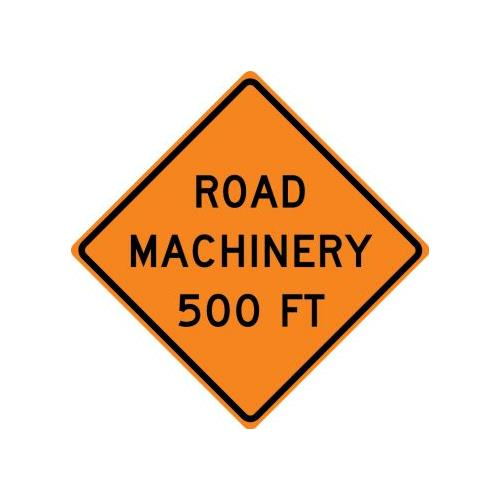 30" x 30" High Intensity Prismatic Rigid Construction Sign with Legend: "Road Machinery 500 Ft"