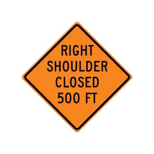 30" x 30" High Intensity Prismatic Rigid Construction Sign with Legend: "Right Shoulder Closed 500 Ft"