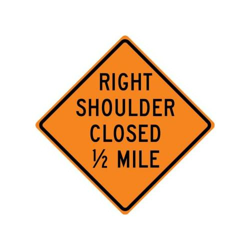 30" x 30" DG High Prism Rigid Construction Sign with Legend: "Right Shoulder Closed 1/2 Mile"