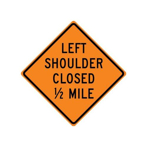 30" x 30" DG High Prism Rigid Construction Sign with Legend: "Left Shoulder Closed 1/2 Mile"
