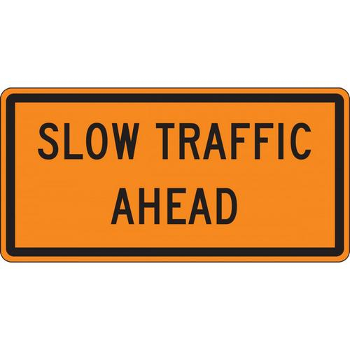 24" x 48" DG High Prism Rigid Construction Sign with Legend: "Slow Traffic Ahead"