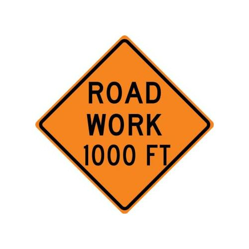 Accuform FRK367DP 36" x 36" DG High Prism Rigid Construction Sign with Legend: "Road Work 1000 Ft"