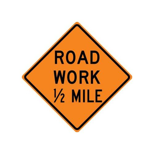 36" x 36" DG High Prism Rigid Construction Sign with Legend: "Road Work 1/2" Mile"