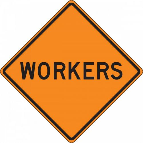 36" x 36" DG High Prism Rigid Construction Sign with Legend: "Workers"