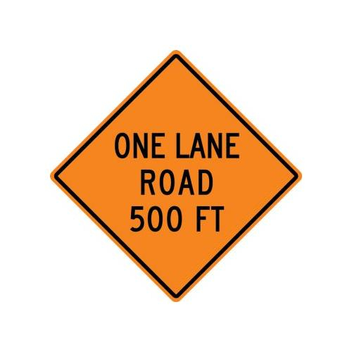 30" x 30" DG High Prism Rigid Construction Sign with Legend: "One Lane Road 500 Ft"