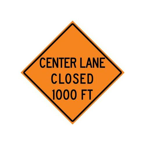 30" x 30" High Intensity Prismatic Rigid Construction Sign with Legend: "Center Lane Closed 1000 Ft"