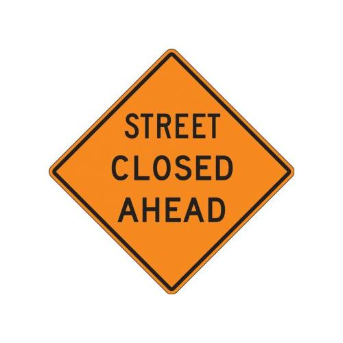 48" x 48" High Intensity Prismatic Rigid Construction Sign with Legend: "Street Closed 1/2 Mile"