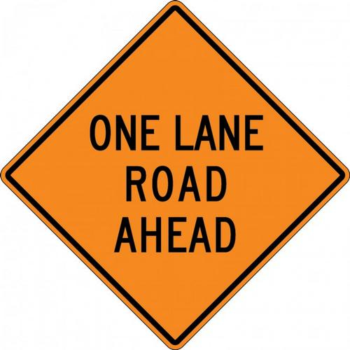 48" x 48" High Intensity Prismatic Rigid Construction Sign with Legend: "One Lane Road Ahead"