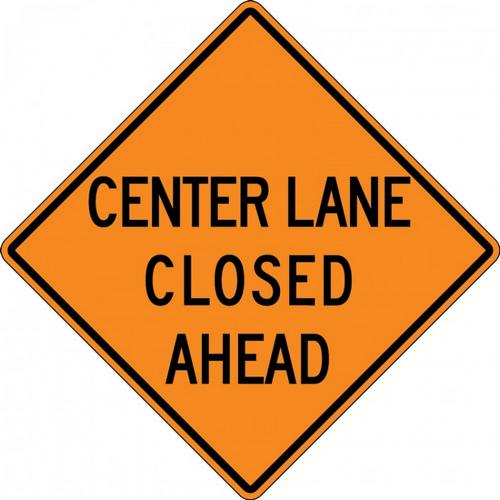 48" x 48" DG High Prism Rigid Construction Sign with Legend: "Center Lane Closed 1000 Ft"