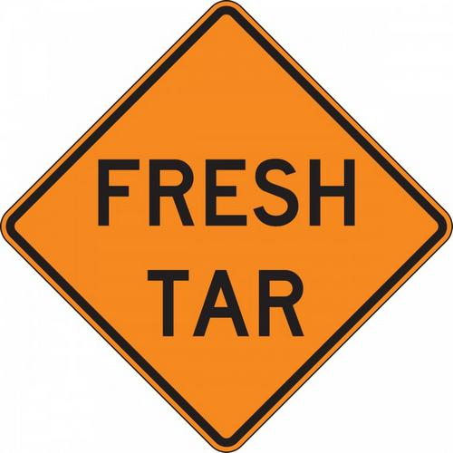 48" x 48" High Intensity Prismatic Rigid Construction Sign with Legend: "Fresh Tar"