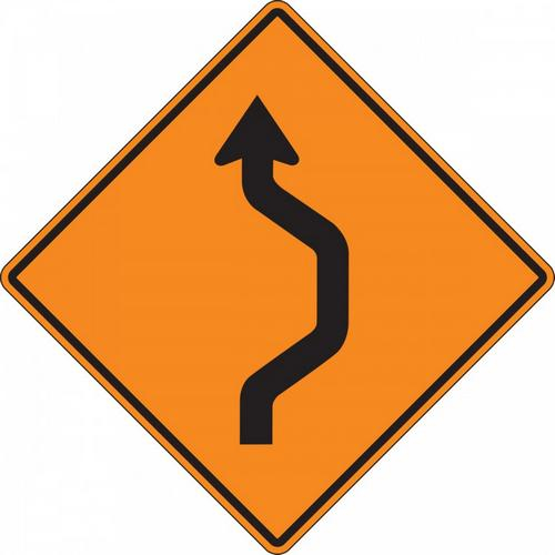 48" x 48" DG High Prism Rigid Construction Sign with Symbol: "Double Reverse Right Curve"
