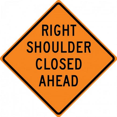 48" x 48" DG High Prism Rigid Construction Sign with Legend: "Right Shoulder Closed Ahead"
