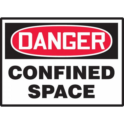 - Adhesive confined space label attaches to smooth, curved or irregular surfaces