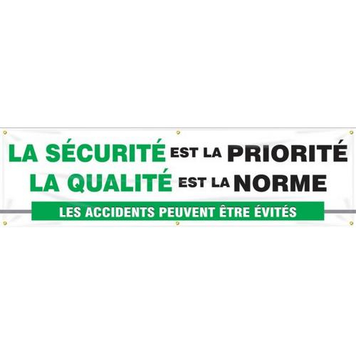 Accuform, FRMBR897, 28" x 8' French Banner with Legend: "La Securite Est La Priorite..."