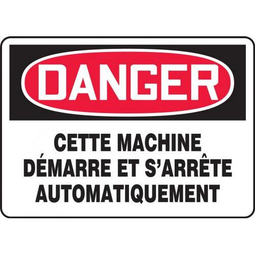 OSHA French Sign with Legend: "This Machine Starts and Stops Automatically". Will help improve safety by warning of equipment that may start or stop without warning.