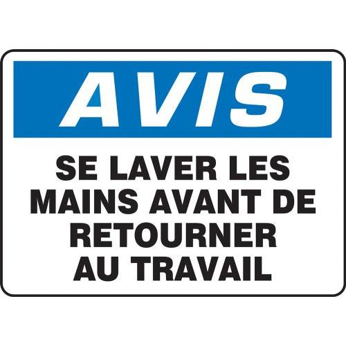 Accuform, FRMRST812XT, 7" x 10" Dura-Plastic French Sign: "Wash Hands Before Returning to Work"